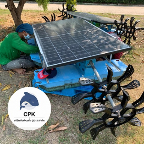 - เครื่องเติมอากาศโซล่าร์เซลล์ 2 ใบพัด รุ่น 2SL-200 มอเตอร์ DC 350 วัตต์ แผงโซลาร์เซลล์ 200วัตต์ รอบการตีน้ำ 60-80 รอบความแรงขึ้นกับแสงแดด ประหยัดค่าไฟฟ้า